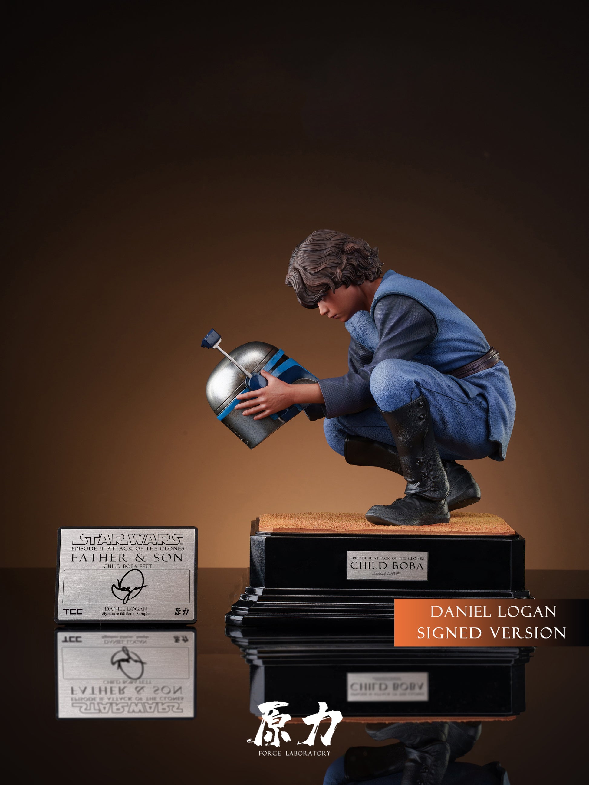 The signature comes from DANIEL LOGAN, the actor played child boba in the movie